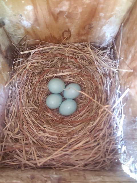 May 11, 2022 at 10:28 pm #24357Happy to report that this morning I saw the momma pop her head out of the box after several weeks of no sightings and an empty nest. I snapped a photo inside and we have our first egg of 22!